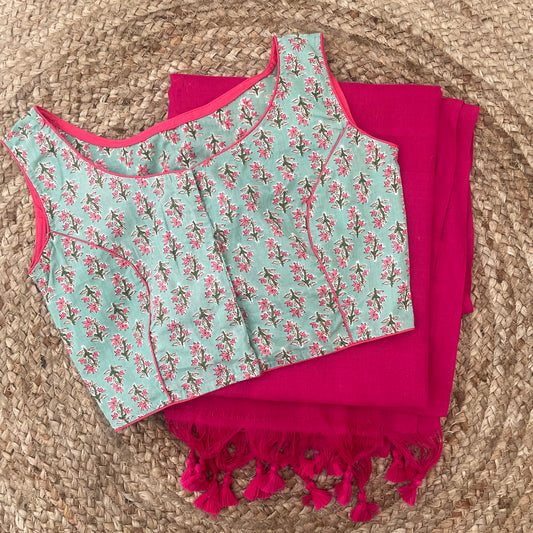 Gulabo Mul Cotton Saree Blouse Combo
