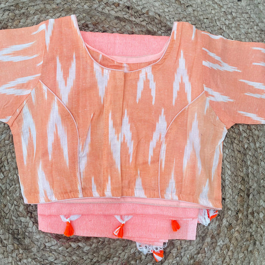 Khadi Cotton Peach Saree Blouse Combo