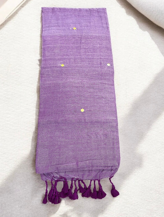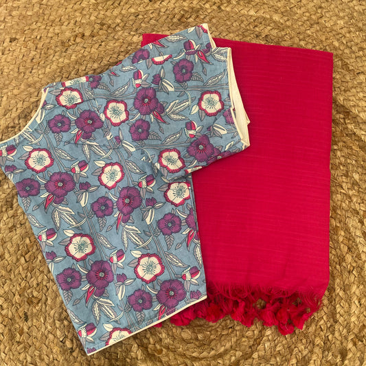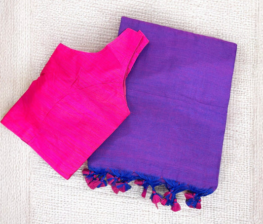 Violet Mul Cotton Saree Blouse Combo