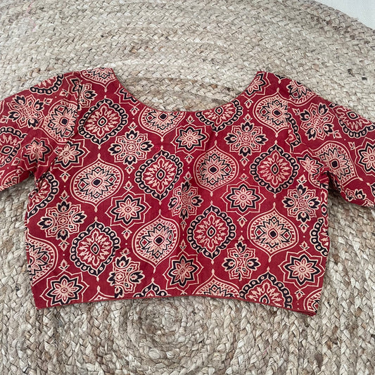 Red Khadi Cotton Saree Blouse Combo