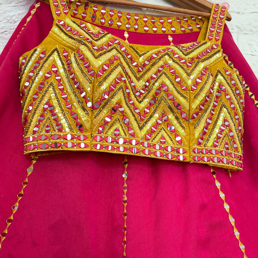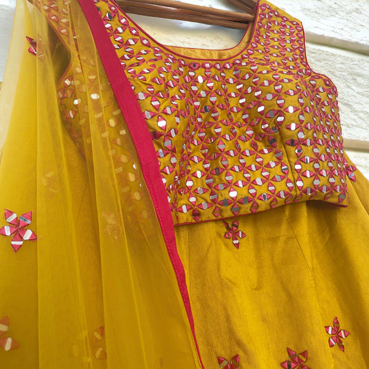 Sold outCotton Silk Mirror Work Lehenga Set