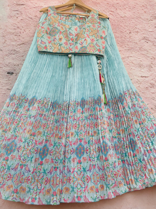 Sky Blue Digital Printed Lehenga