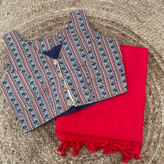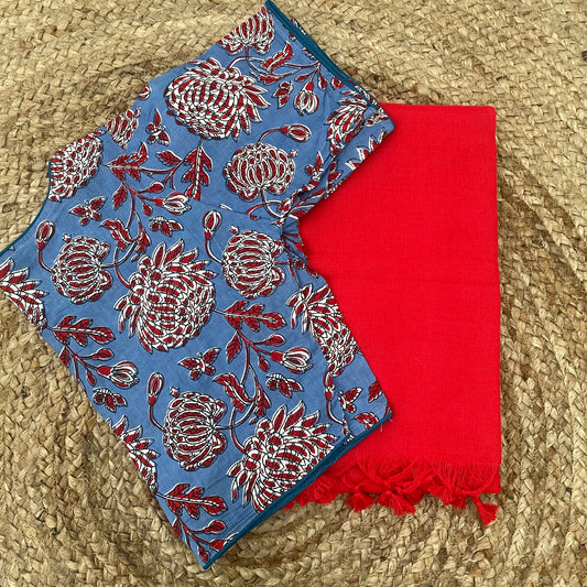 Surajmukhi Handloom Cotton Saree (With Stitched Brocade Blouse)