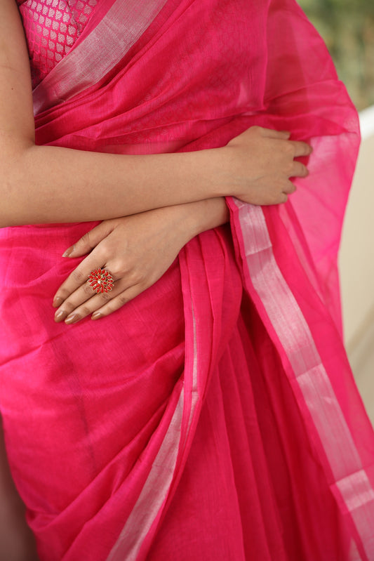 Gulaabi Ikkat Linen Saree (With Stitched Blouse)