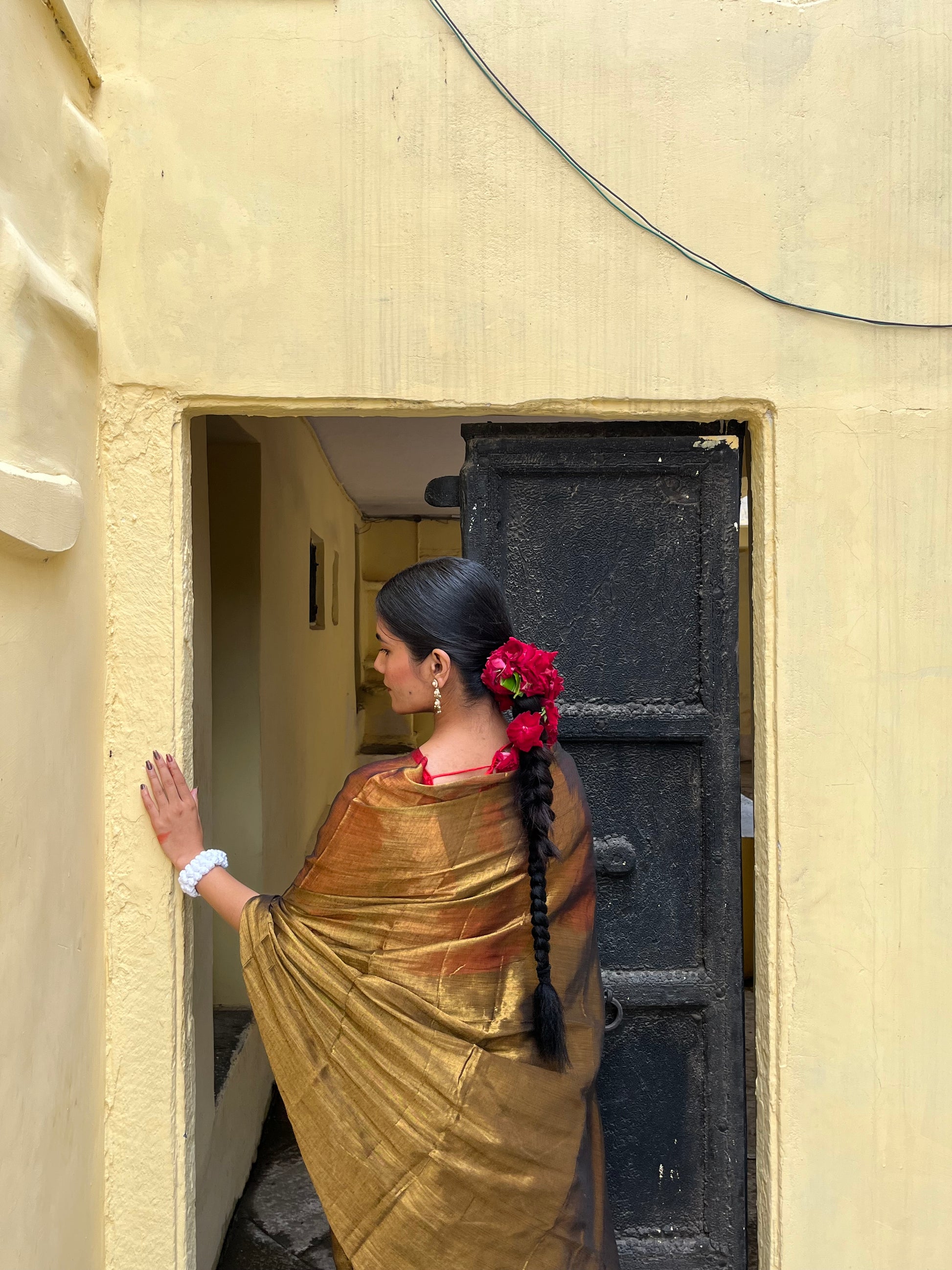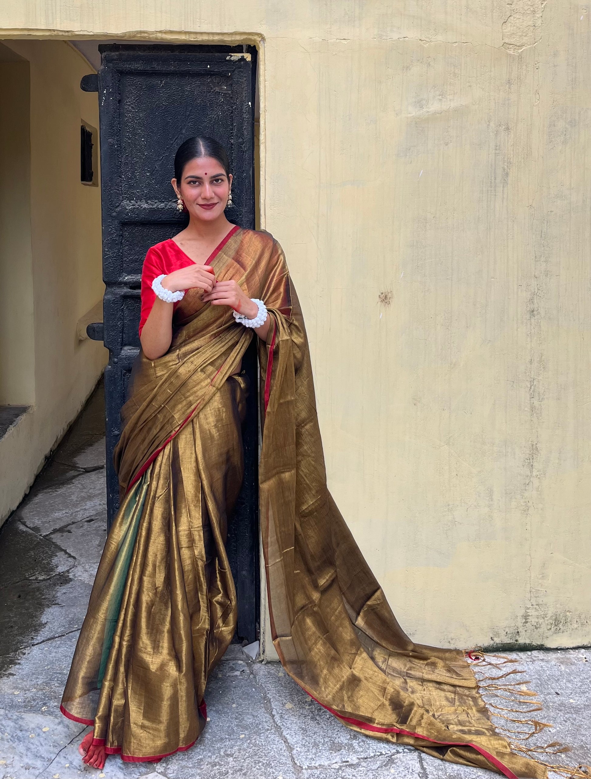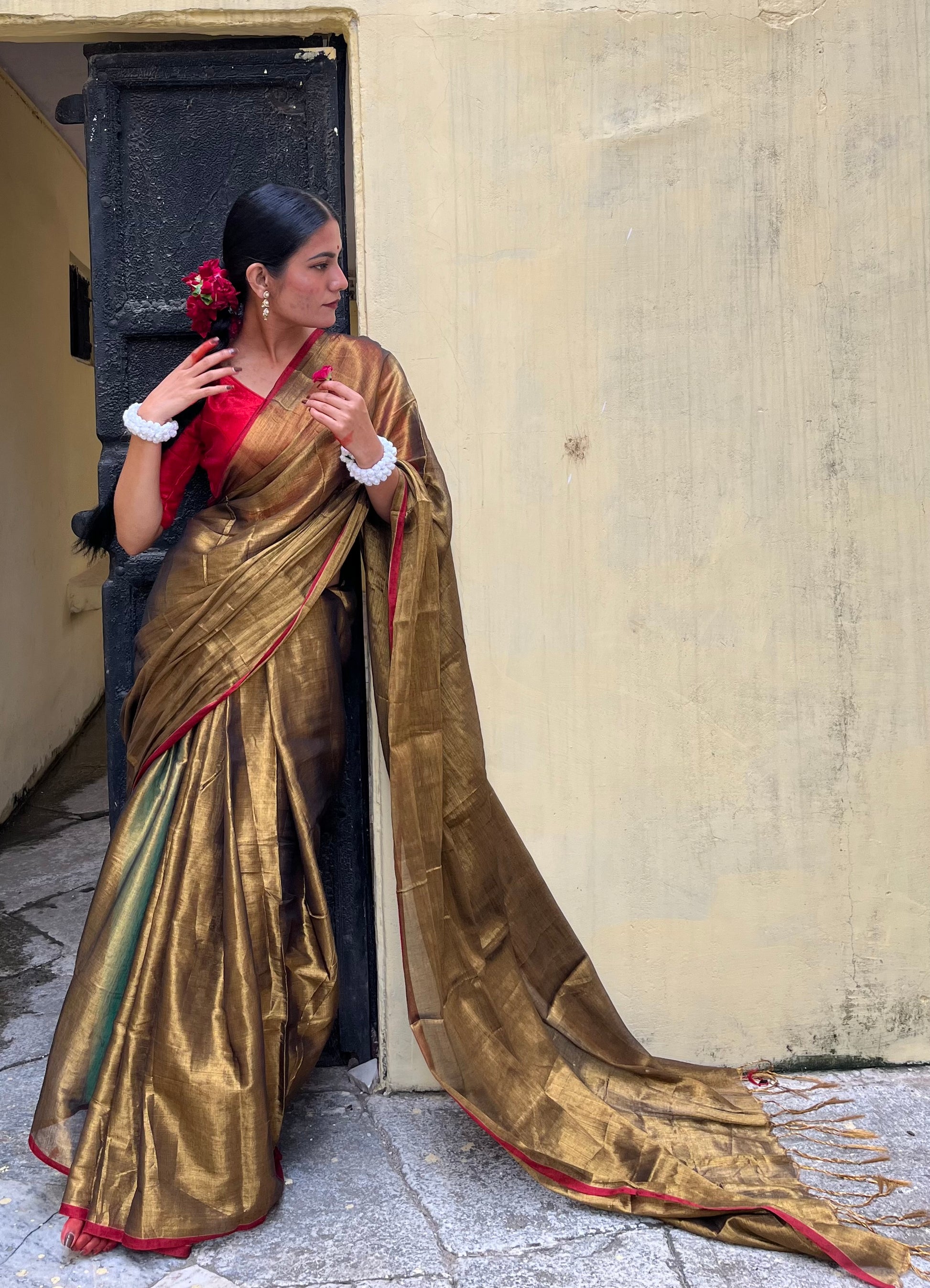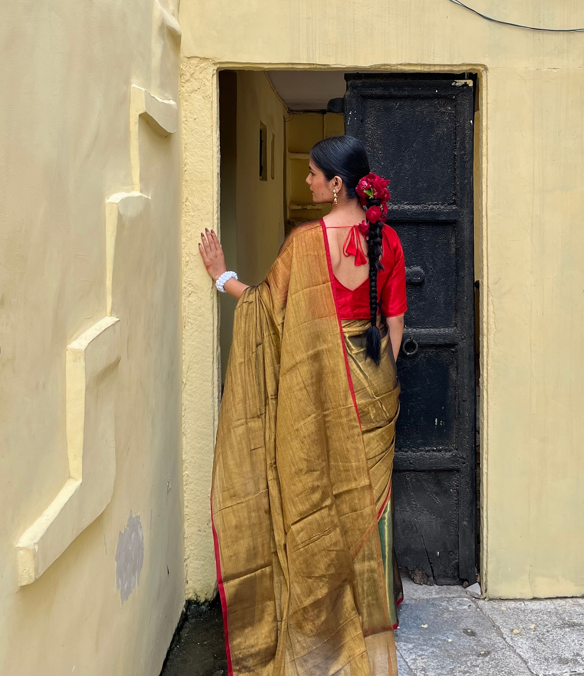 Saree Fabric: Pure Tissue Cotton. 5.8 meters saree length.
